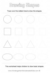 They will practice recognizing and drawing basic shapes such as . They include exercises on tracing, drawing, naming and identifying 2d shapes, .